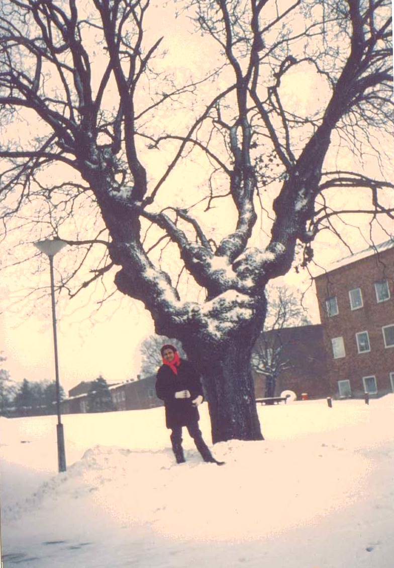 Alia infront of Karolinska Institute